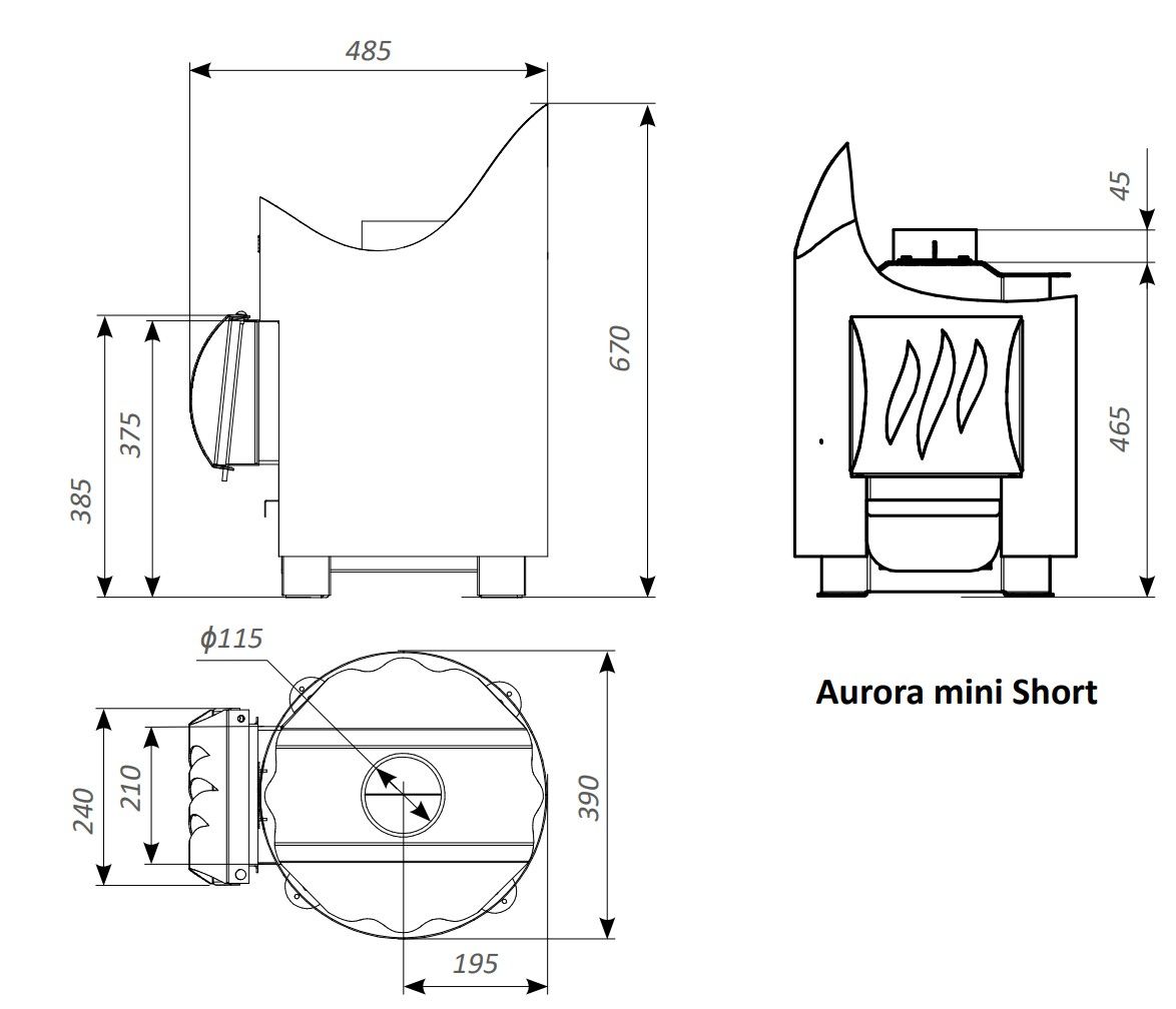 Печь для бани Grill'D Aurora Mini Short со стеклом