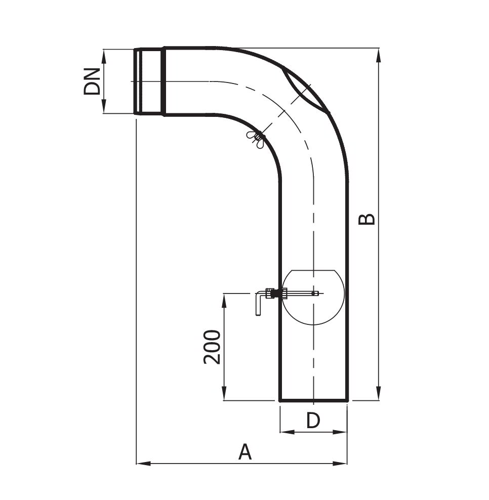Колено гнутое с шибером и ревизией d130