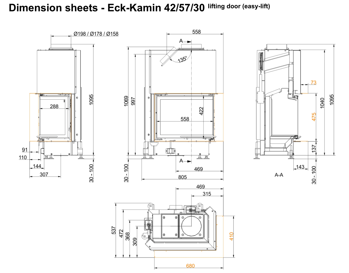 Каминная топка Brunner Eck Lift 42/57/30 Left