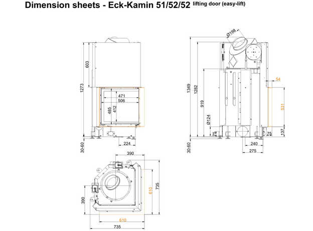 Каминная топка Brunner Eck Lift 51/52/52