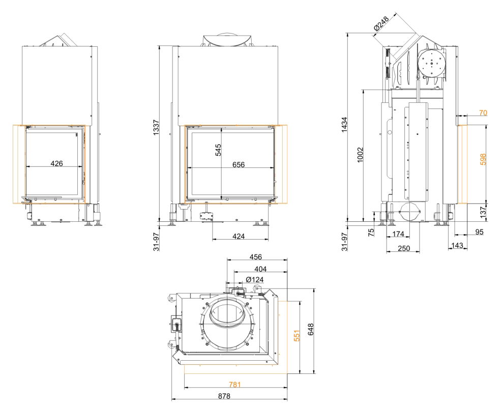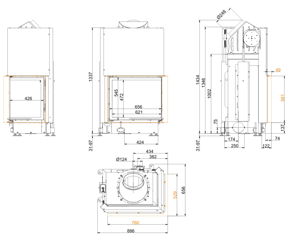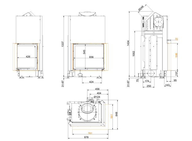 Каминная топка Brunner Eck Lift 57/67/44 Right