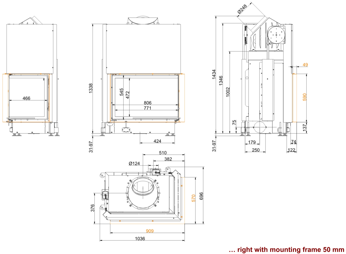 Каминная топка Brunner Eck Lift 57/82/48 Left