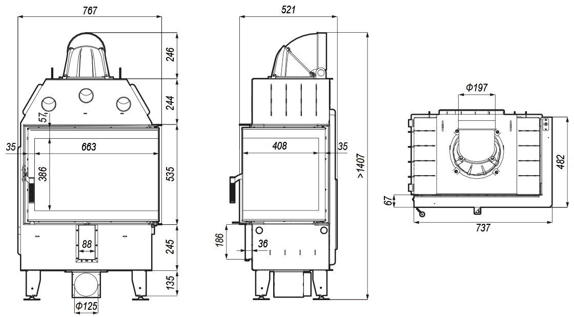 Диаметр дымохода: