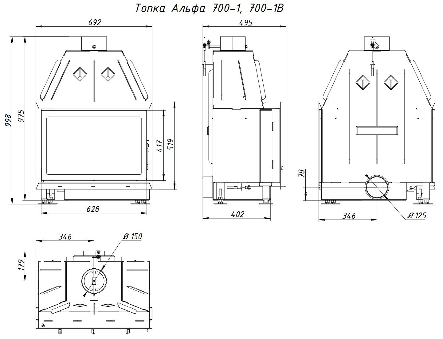Каминная топка EcoKamin Альфа 700-150