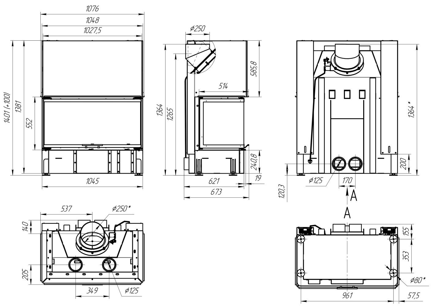 Диаметр дымохода: