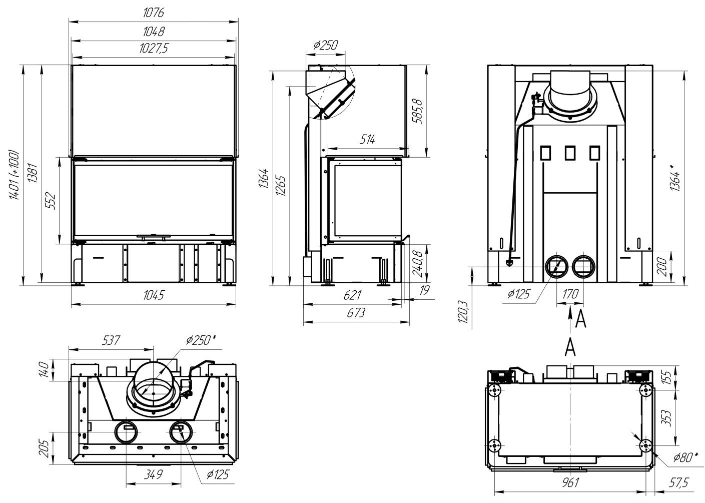Диаметр дымохода: