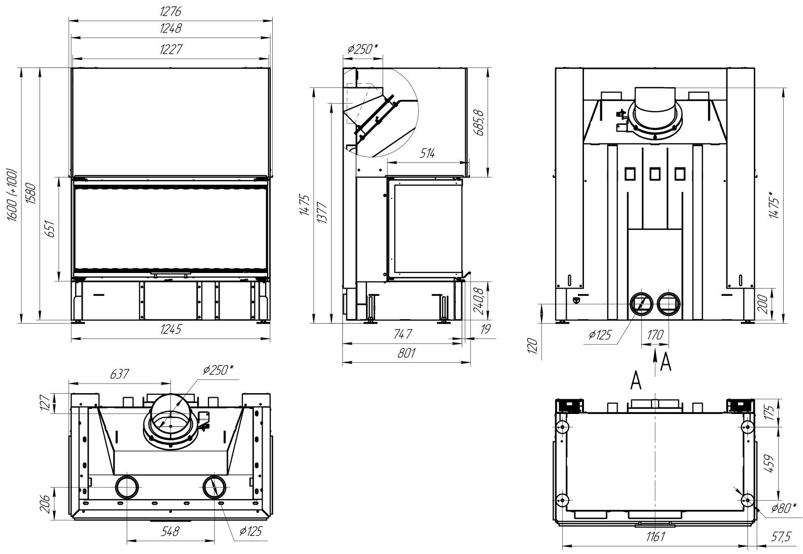 Диаметр дымохода: