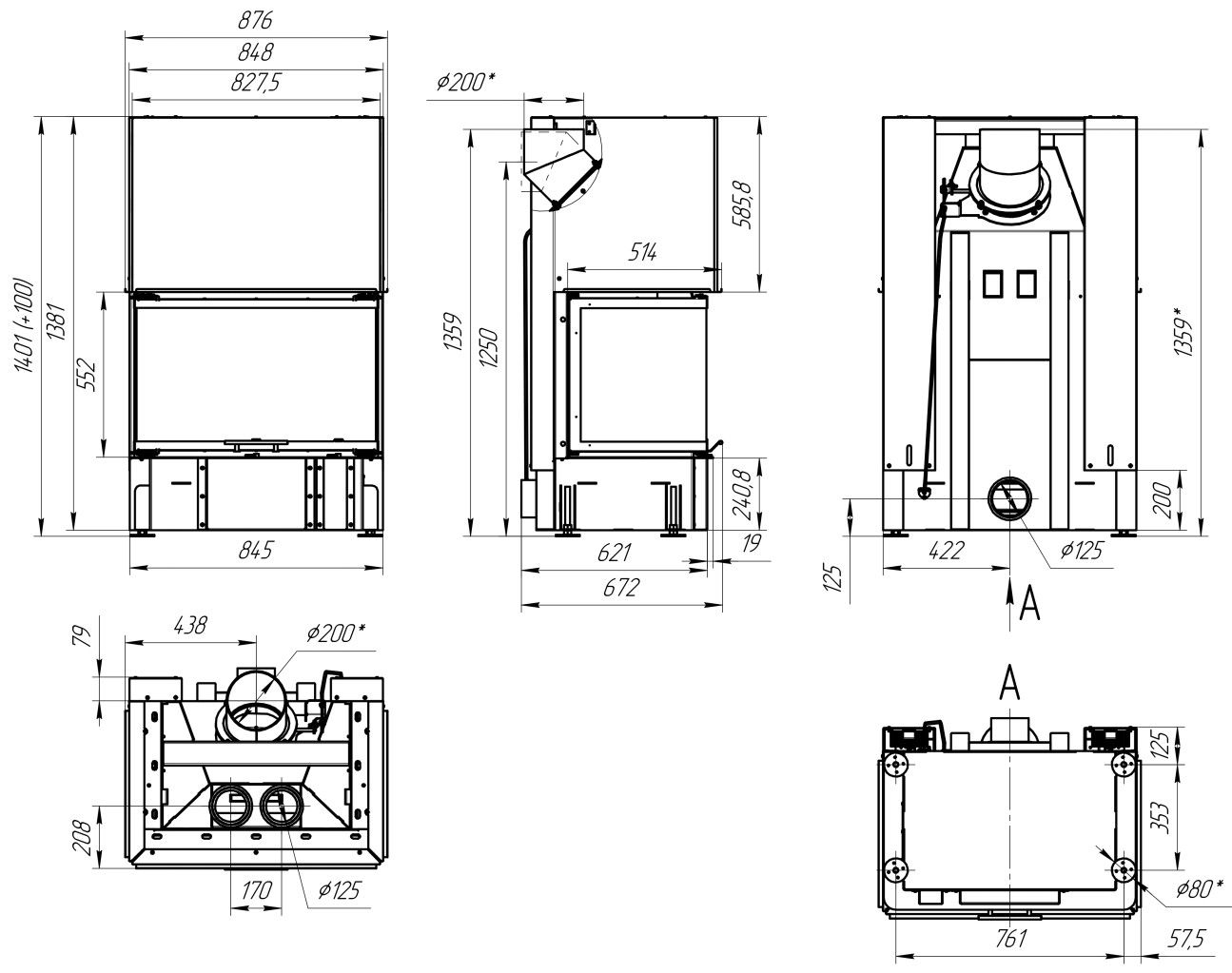 Каминная топка EcoKamin Дельта 800 B