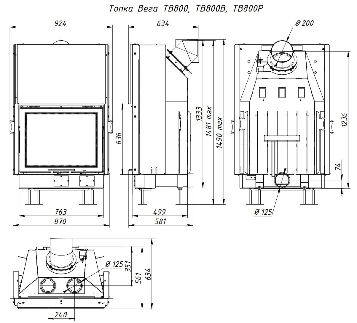 Каминная топка EcoKamin Вега 800 PB