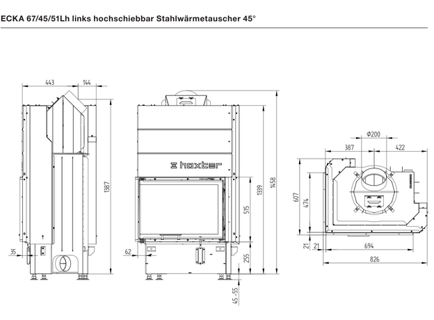 Каминная топка Hoxter ECKA 67/45/51h