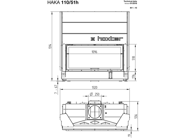Каминная топка Hoxter HAKA 110/51h