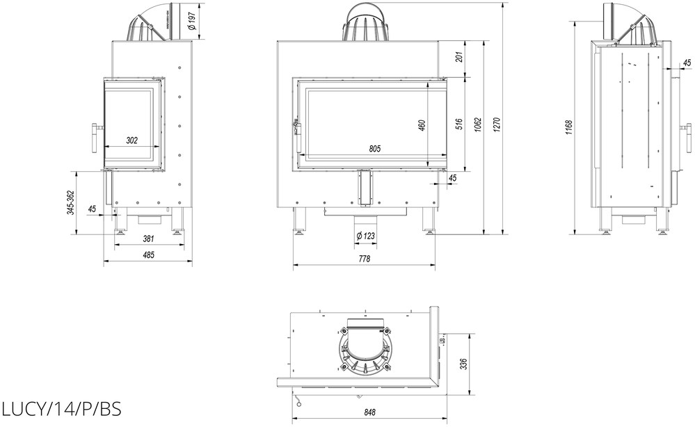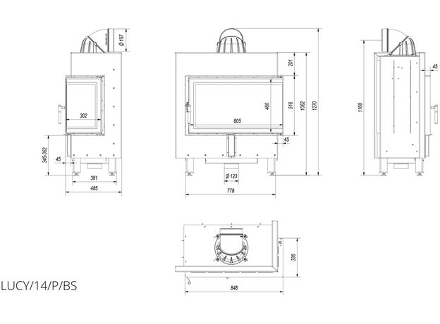 Каминная топка Kratki Lucy 14 R/BS