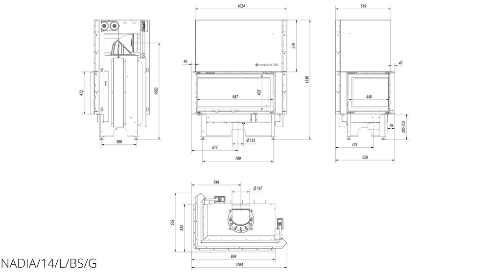 Каминная топка Kratki Nadia 14 L/BS/G