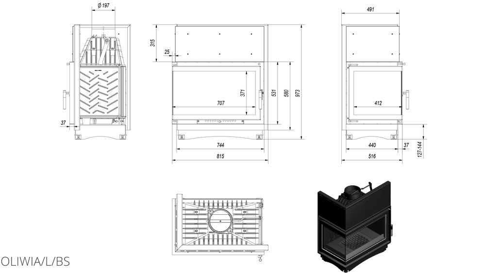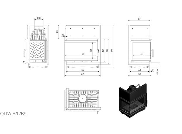 Каминная топка Kratki Oliwia 18 L/BS