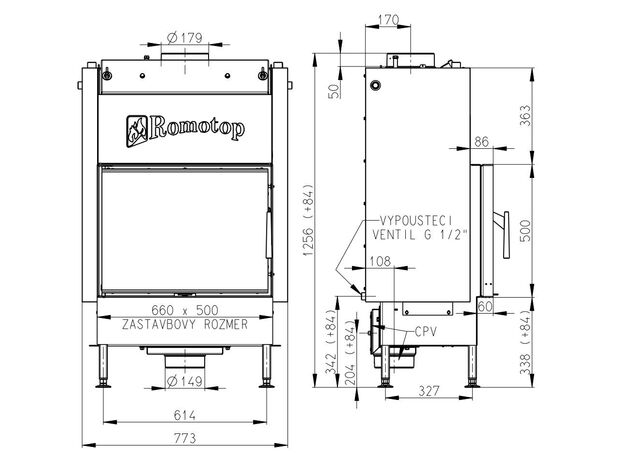Каминная топка Romotop Kv 025 W 01 с теплообменником