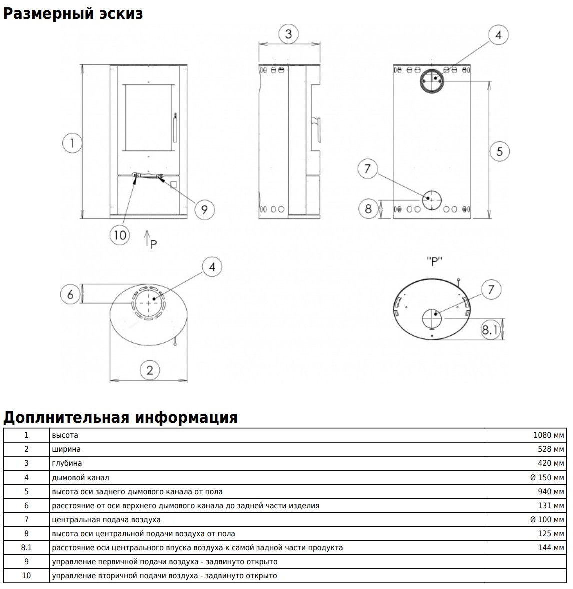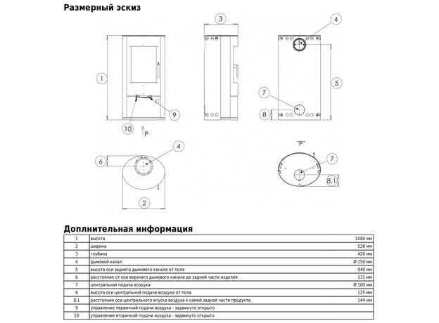 Диаметр дымохода: