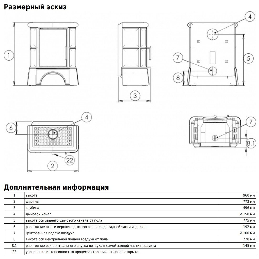 Диаметр дымохода: