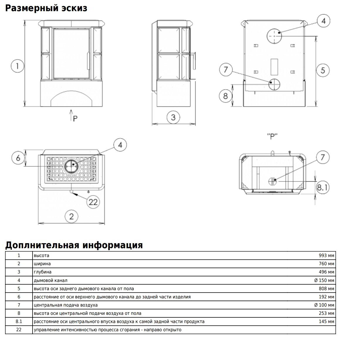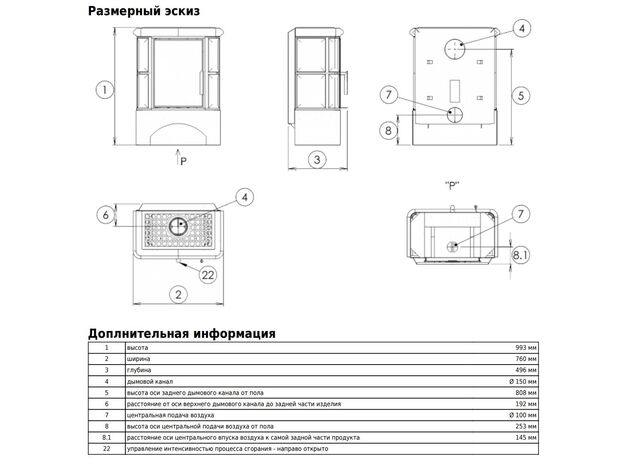 Диаметр дымохода: