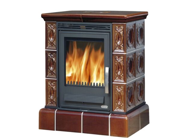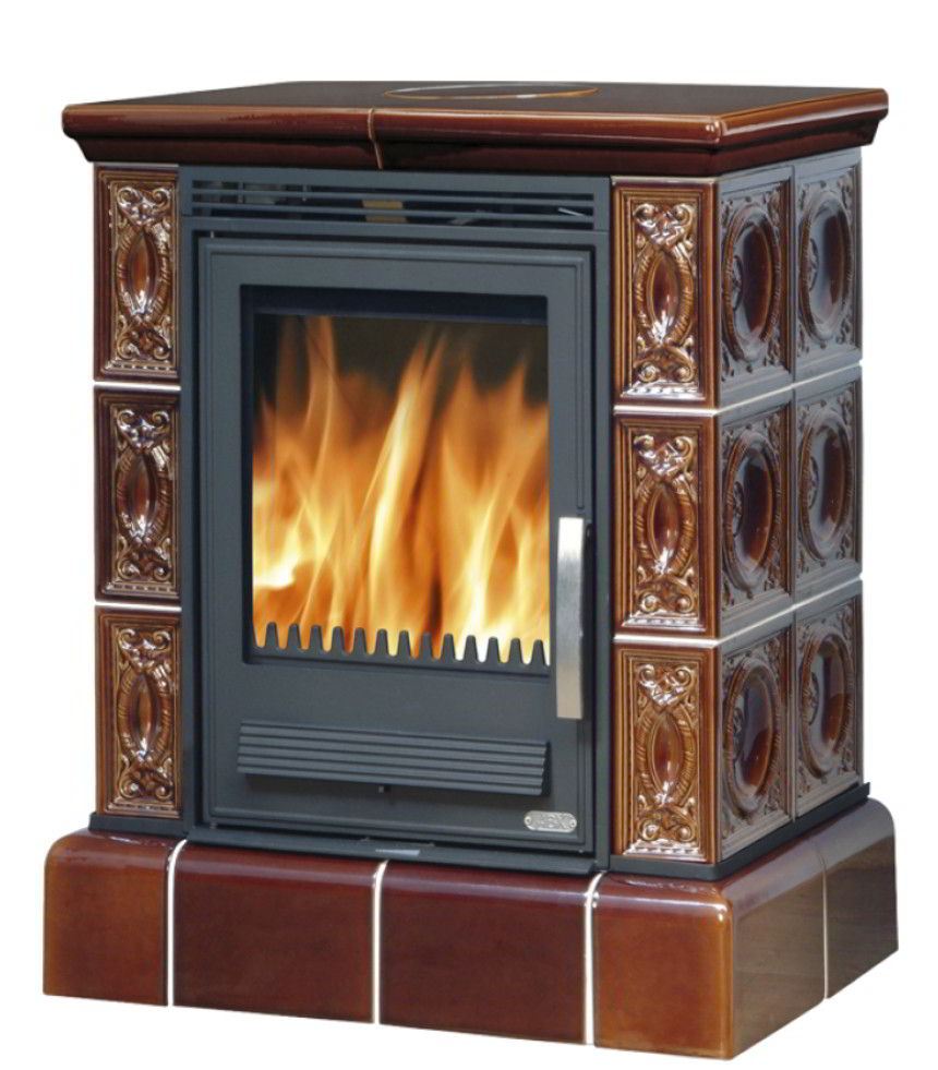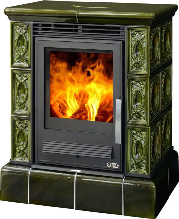 Печь-камин ABX Helvetia KP с кафельным цоколем и теплообменником