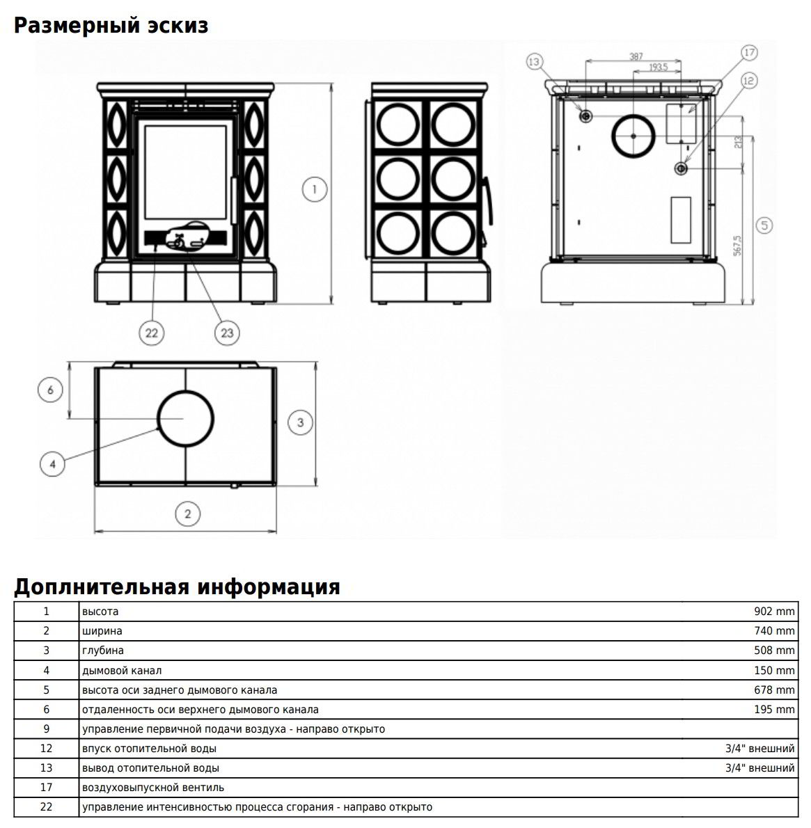 Диаметр дымохода: