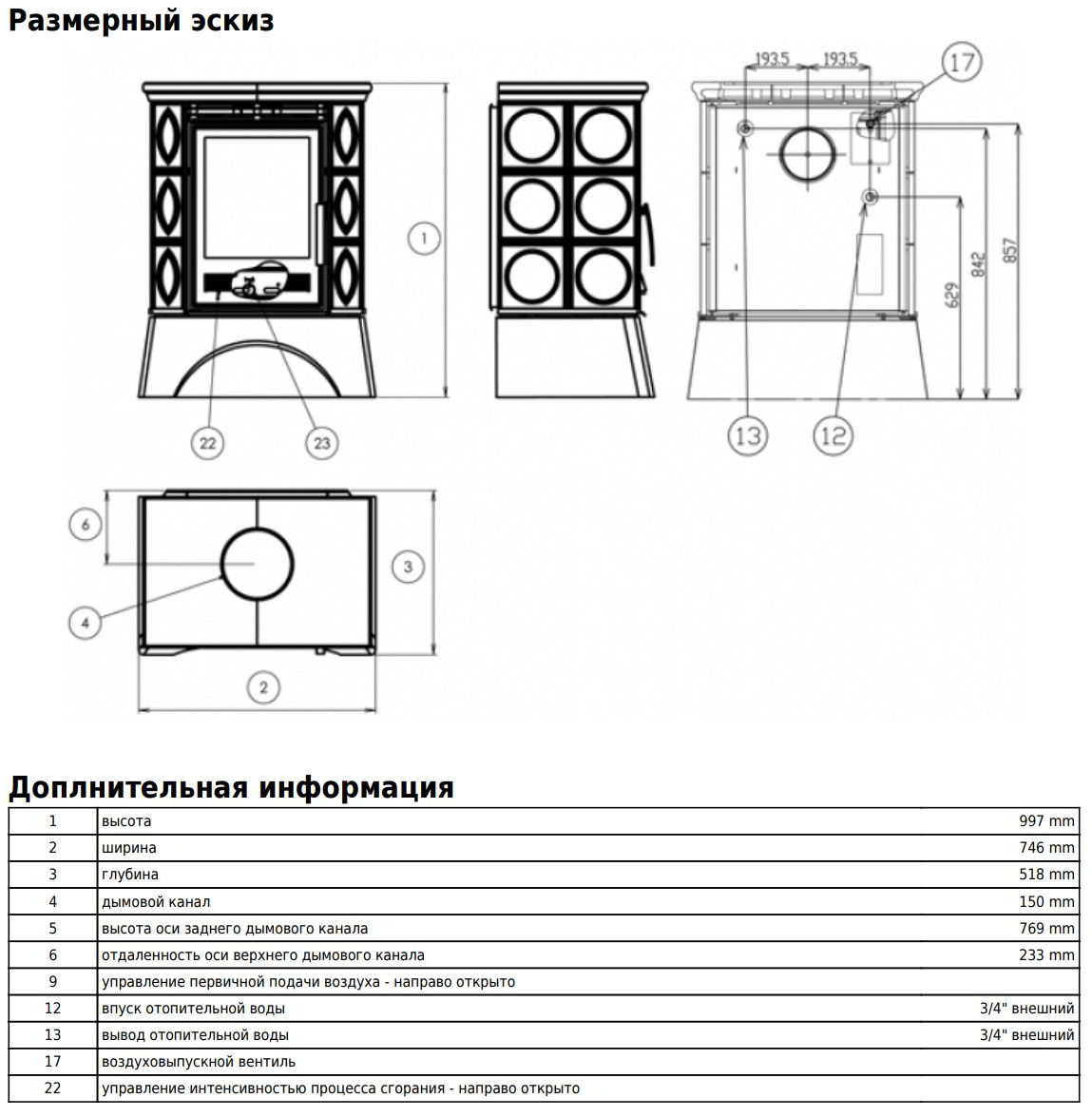Диаметр дымохода: