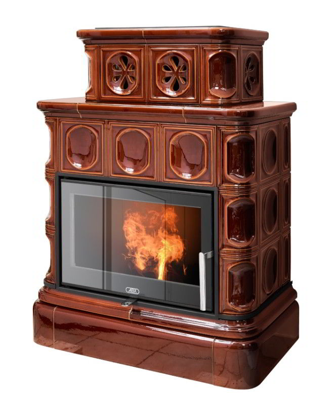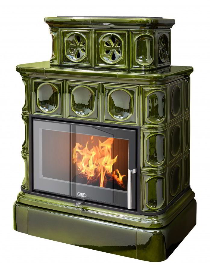 Печь-камин ABX Karelie EXclusive с кафельным цоколем