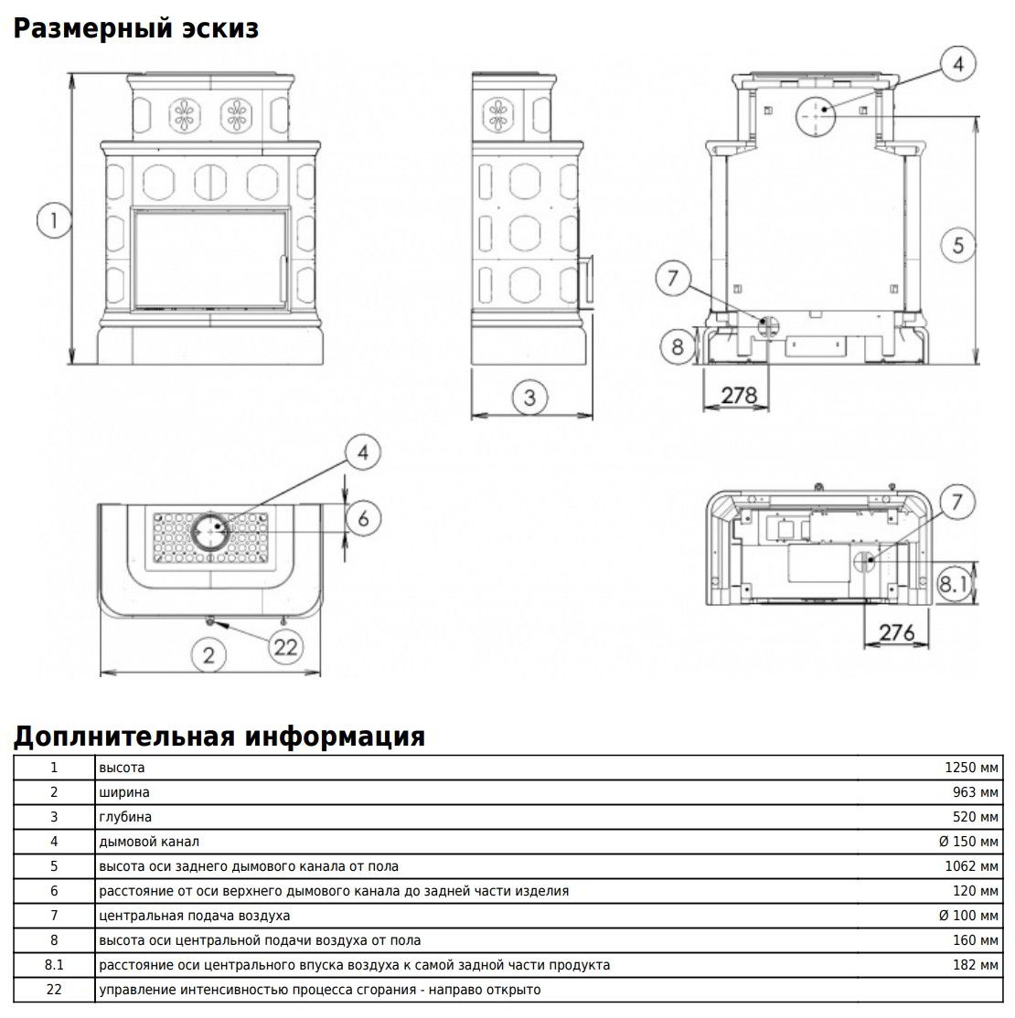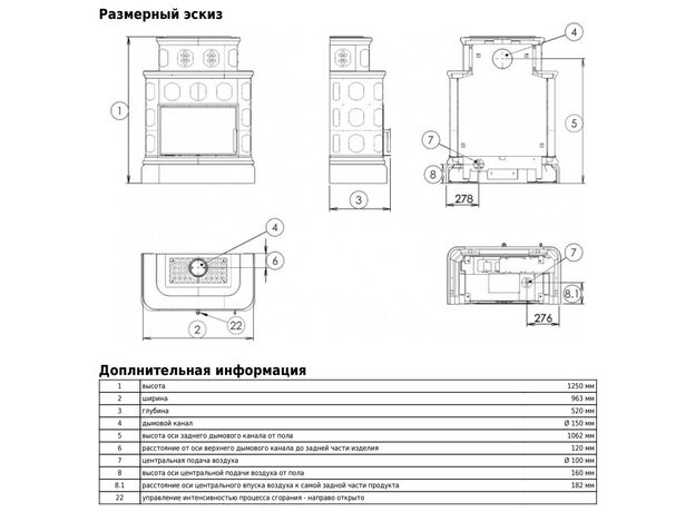 Диаметр дымохода: