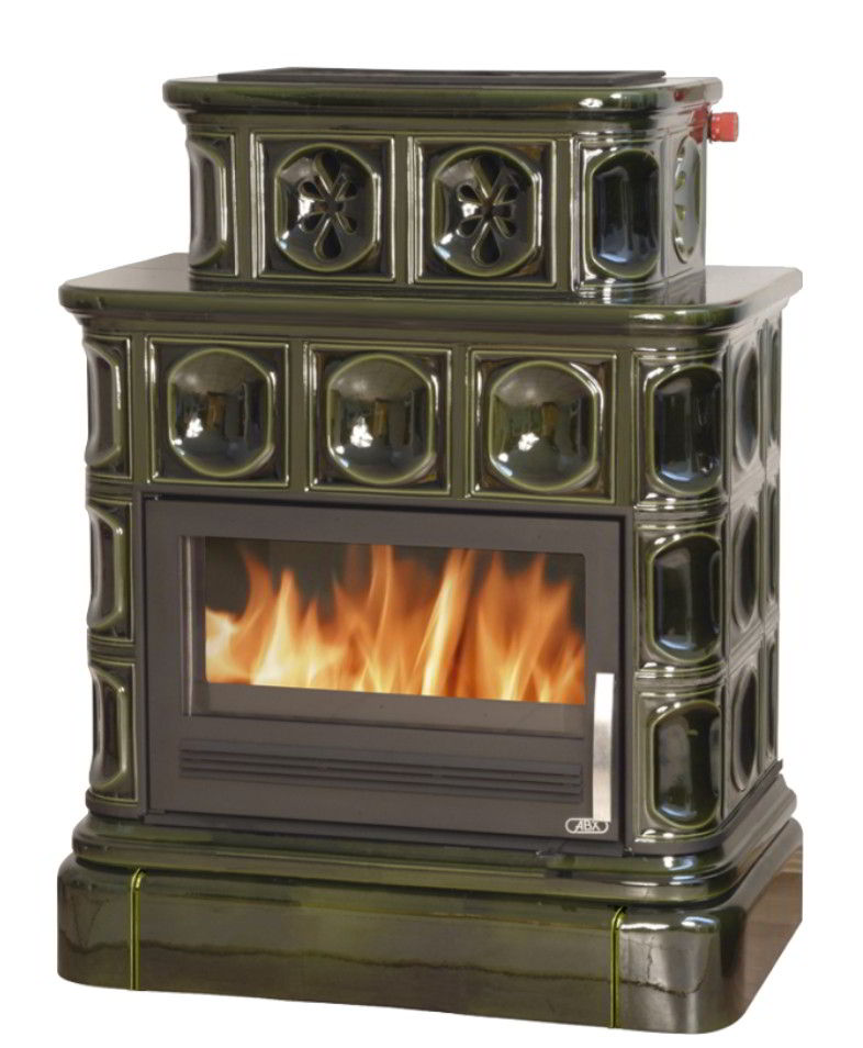 Печь-камин ABX Karelie P зеленая с кафельным цоколем