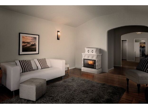 Печь-камин ABX Karelie с кафельным цоколем