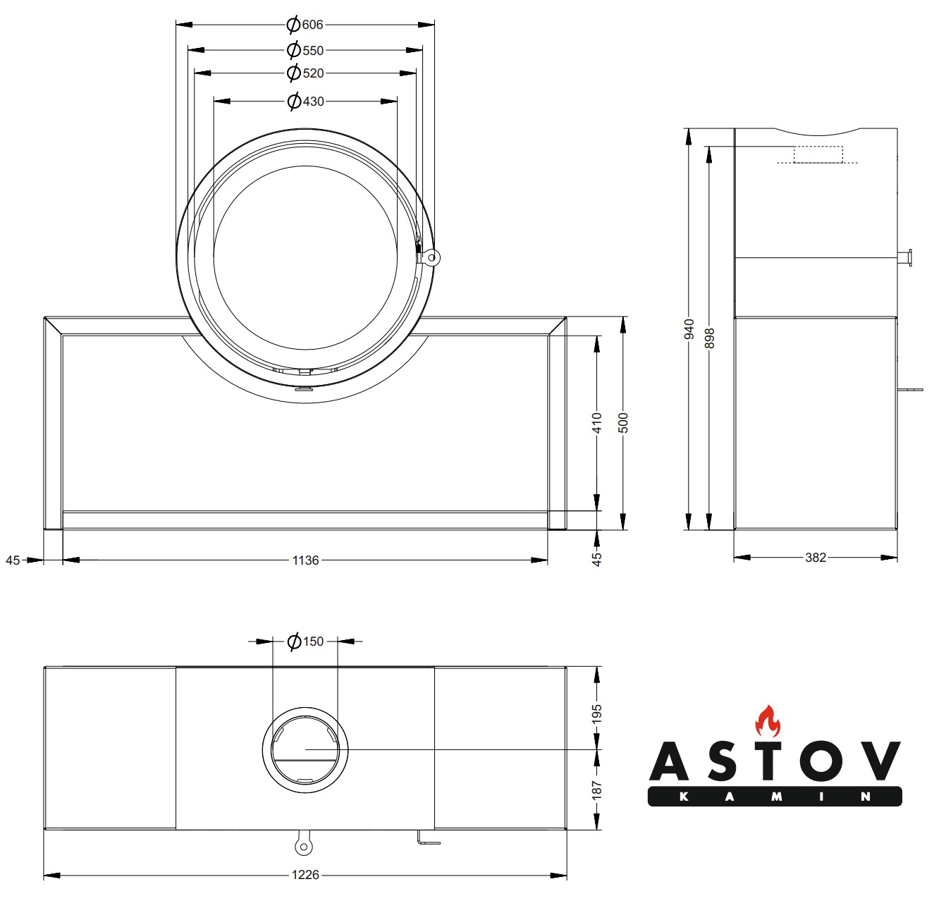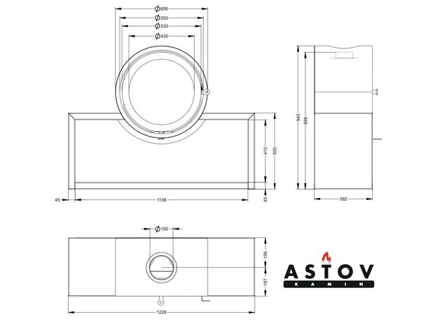 Печь-камин Astov D600 на подиуме