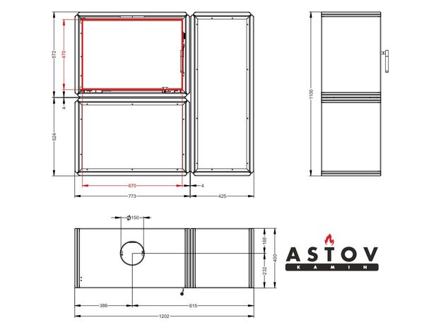 Печь-камин Astov Легго ПК 7454 с нижним дровником