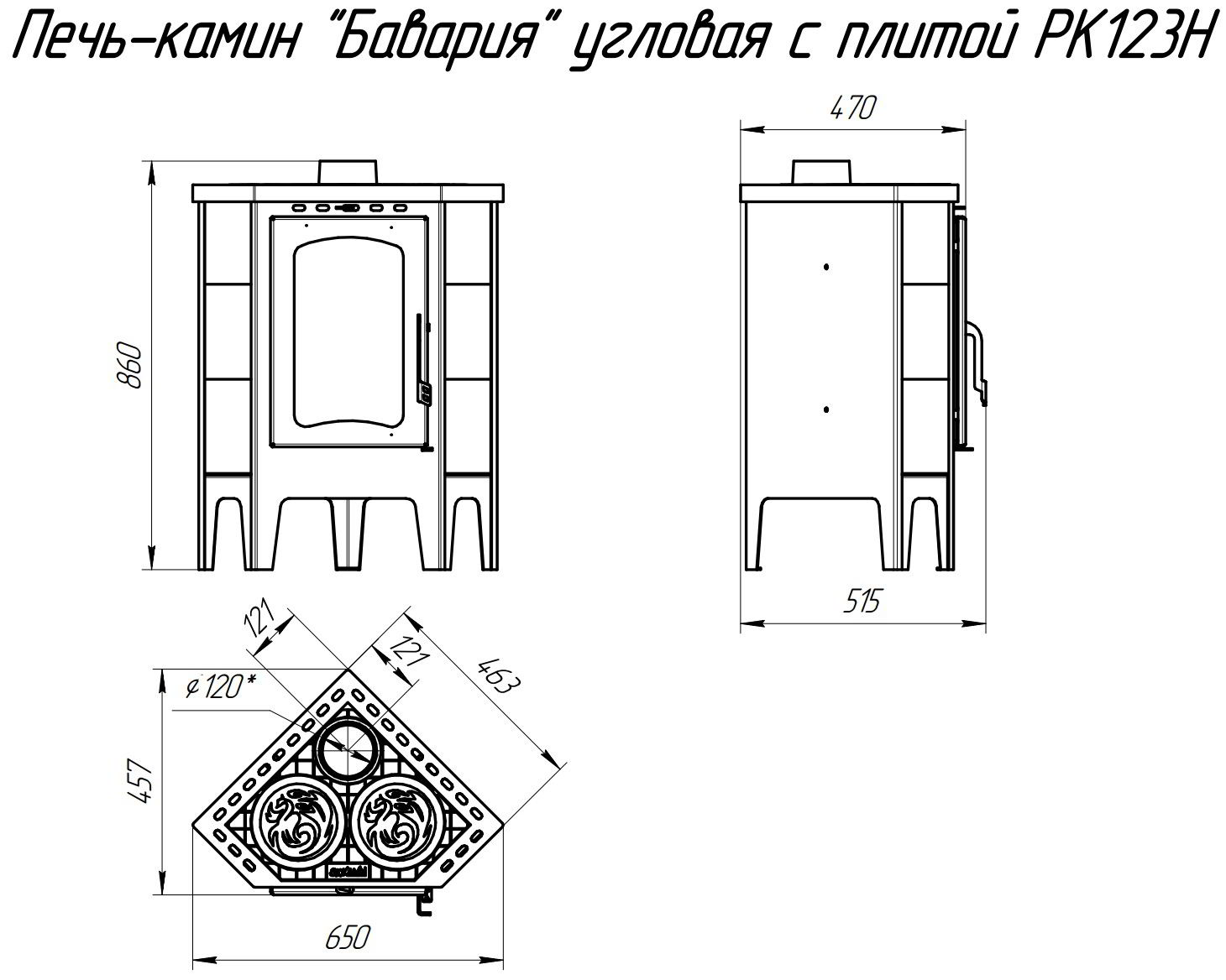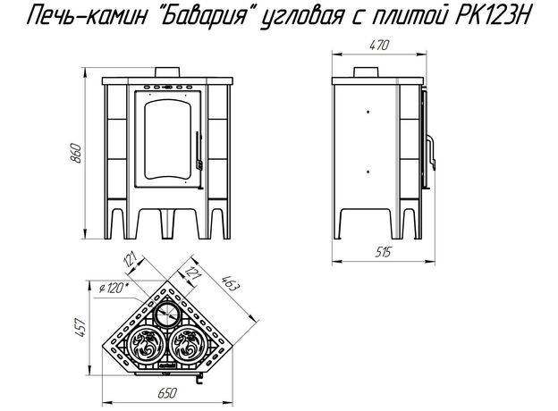 Печь-камин EcoKamin Бавария Незабудка Угловая с плитой