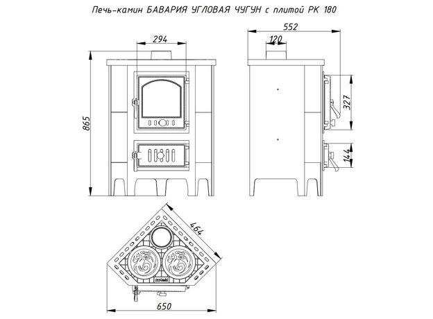 Печь-камин EcoKamin Бавария Угловая Чугун с плитой