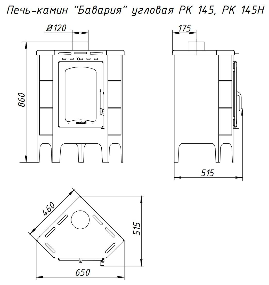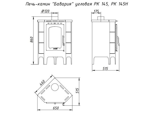 Печь-камин EcoKamin Бавария Угловая