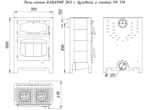 Печь-камин EcoKamin Бавария Эко с духовкой и плитой