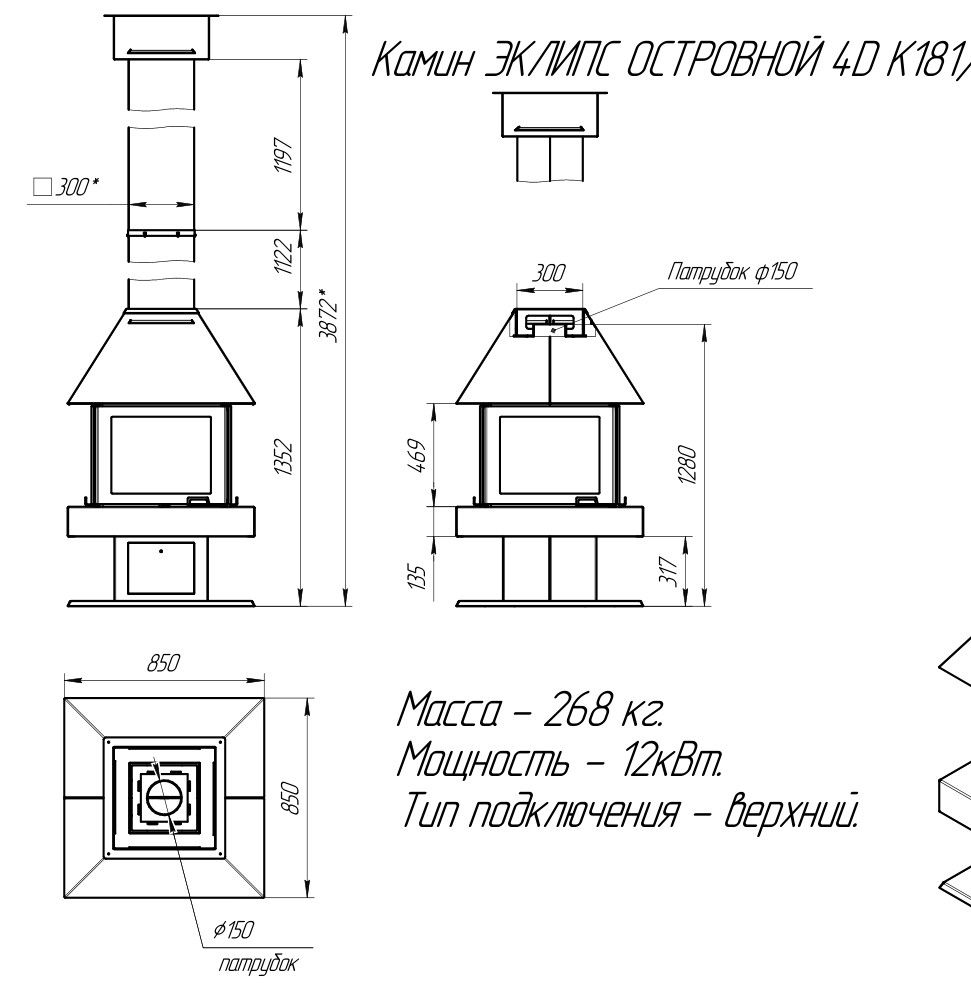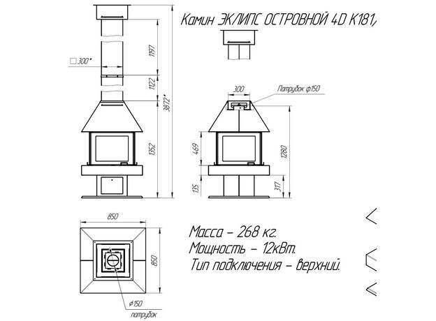 Печь-камин EcoKamin Эклипс Островной 4D