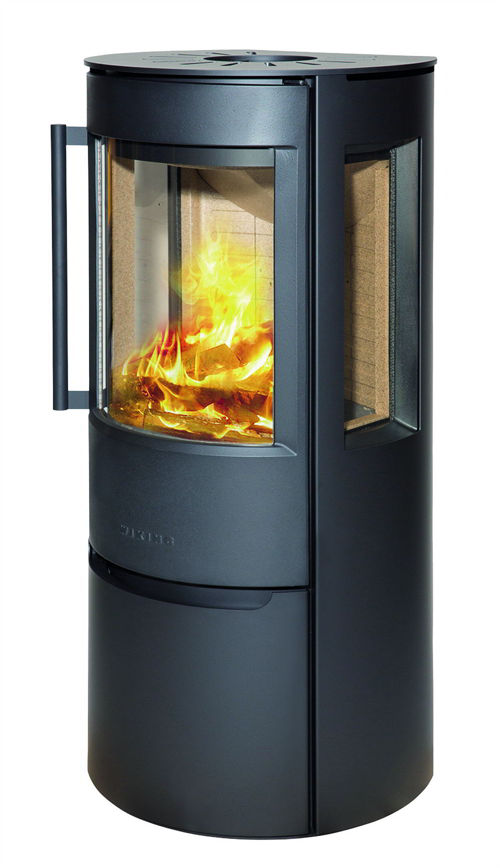 Дверцы печей Wiking датчане делают из чугуна. Вообще дверь — очень нагруженный элемент любой каминной топки. Она больше других деталей печи испытывает на себе резкие перепады температур и потому логично, чтобы этот элемент был максимально прочным и стабильным на всех циклах горения, не был подвержен деформации. Внешне чугунные двери выглядят добротно. С них со временем не облазит слоями краска и их сложно поцарапать случайными касаниями полена или кочерги. И вообще чугун в экстерьере современной печи — это красиво. Дизайн вне времени.